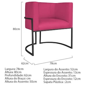 - Detalhes dos Pés: acompanha base de ferro, de alta resistência; Acompanha Almofadas extras: Não Acompanha Puff: Não Almofada do assento: Não Possui Almofada do encosto: Não Possui Altura do assento até o chão: 50 Altura do Encosto: 31 Altura dos Pés: 37.5 Ambiente Principal: Sala de Estar Cor: Pink/Preto Cor do Produto: Pink/Preto Design Assinado: Não Enchimento do Assento: Espuma D-18 Enchimento do Braço: Espuma D-18 Enchimento do Encosto: Espuma D-18 Encosto para a Cabeça: Não Estampado: Não Extensível: Não Firmeza do Assento: Firme Itens Inclusos: 1 Poltrona Linha ou Coleção: Munique Material do Braço: Madeira e espuma Material dos Pés: Metal Modelo de Poltrona: Fixo Necessita Montagem: Não Origem do Produto: Nacional Peso: 14 Possui Percintas Elásticas: Sim Possui Pés: 01 Possui Rodízio: Não Recomendações de Uso, Manutenção e Limpeza: Limpar com flanela limpa e seca. Não molhar o móvel e não expor em lugar úmido ou próximo de fontes de calor. Não usar produtos abrasivos. Resistente à Chuva: Não Suporta Até (kg): 120 Tecido Predominante: Suede Tipo de Assento: Fixo Tipo de Encosto: Fixo Tipo de Espuma do Assento: Espuma Convencional Tipo de Espuma do Encosto: Espuma Convencional Tipo de Poltrona: Decorativa Marca: Maranata Estofados Ean: 7909903458600