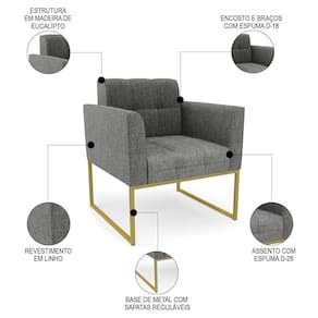 Você está procurando uma poltrona que combine com a sua Sala De Estar, recepção ou seu quarto, que ofereça conforto e qualidade? Então você vai adorar a Poltrona Decorativa Base Industrial Dourado Ana Linho Grafite, da Ibiza!
