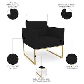 Você está procurando uma poltrona que combine com a sua Sala De Estar, recepção ou seu quarto, que ofereça conforto e qualidade? Então você vai adorar a Poltrona Decorativa Base Industrial Dourado Ana Linho Preto, da Ibiza!