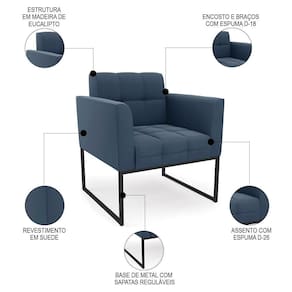 Você está procurando uma poltrona que combine com a sua Sala De Estar, recepção ou seu quarto, que ofereça conforto e qualidade? Então você vai adorar a Poltrona Decorativa Base Industrial Preto Ana Suede Azul Marinho, da Ibiza!