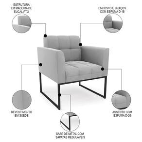 Você está procurando uma poltrona que combine com a sua Sala De Estar, recepção ou seu quarto, que ofereça conforto e qualidade? Então você vai adorar a Poltrona Decorativa Base Industrial Preto Ana Suede Cinza, da Ibiza!