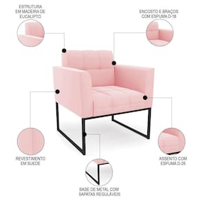 Você está procurando uma poltrona que combine com a sua Sala De Estar, recepção ou seu quarto, que ofereça conforto e qualidade? Então você vai adorar a Poltrona Decorativa Base Industrial Preto Ana Suede Rosa Bebê, da Ibiza!