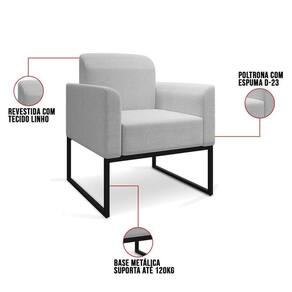 A Poltrona Decorativa Base Industrial Maressa - Ibiza é a Poltrona ideal para você, com seu tecido de Linho lindíssimo, de toque macio e suave, além dos pés em estrutura metálica, trazendo uma base estável para o produto.