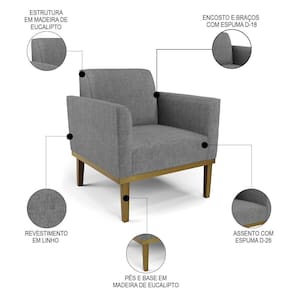 Você está procurando uma poltrona que combine com a sua Sala De Estar, recepção ou seu quarto, que ofereça conforto e qualidade? Então você vai adorar a Poltrona Decorativa Base Madeira Castanho Maressa Linho Grafite, da Ibiza!