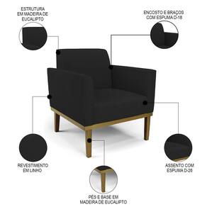Você está procurando uma poltrona que combine com a sua Sala De Estar, recepção ou seu quarto, que ofereça conforto e qualidade? Então você vai adorar a Poltrona Decorativa Base Madeira Castanho Maressa Linho Preto, da Ibiza!