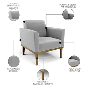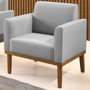 Você está procurando uma poltrona que combine com a sua Sala De Estar, recepção ou seu quarto, que ofereça conforto e qualidade? Então você vai adorar a Poltrona Decorativa Base Madeira Castanho Maressa Suede Cinza, da Ibiza!