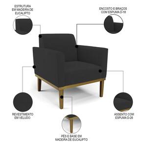 Você está procurando uma poltrona que combine com a sua Sala De Estar, recepção ou seu quarto, que ofereça conforto e qualidade? Então você vai adorar a Poltrona Decorativa Base Madeira Castanho Maressa Veludo Preto, da Ibiza!