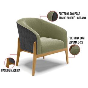 A Poltrona Decorativa Stella é a combinação perfeita de conforto, elegância e modernidade. Seu design curvo e marcante oferece uma sensação única de aconchego, como um abraço acolhedor, tornando-se a peça ideal para compor sua decoração com estilo e sofisticação. Revestida em Sintético PU Preto com Bouclê Pistache, a poltrona traz o toque da tendência atual. Seja na sala de estar, quarto ou escritório, ela se adapta com facilidade. Sua estrutura robusta é sustentada por uma base de madeira (fixa), unindo resistência e design contemporâneo. A tendência desse estilo minimalista ganha destaque, conferindo sofisticação ao móvel, que é perfeito para qualquer espaço que exija funcionalidade e bom gosto. Com enchimento em espuma D-23 no encosto e assento, a Poltrona Decorativa Stella garante o máximo de conforto, mesmo em longos períodos de uso. Além desse modelo, também temos várias opções em base/pés e uma grande variedade de tecido/cores para atender ao seu estilo e conforto. E para deixar seu ambiente ainda mais harmonioso, oferecemos também kits especiais no mesmo design. Caso queira ajuda para escolher a melhor opção para o seu espaço, estamos à disposição!