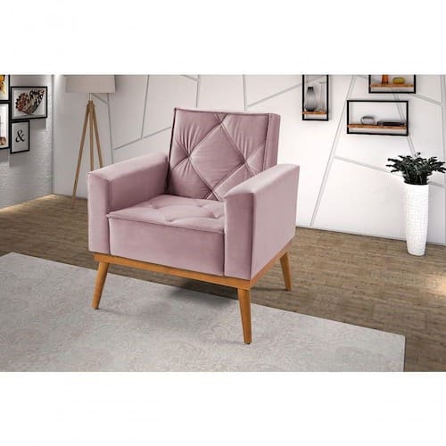 Tipo de produto: Poltrona | Cor: Preto | Tonalidade: Preto | Material da Estrutura: Madeira | Cômodo Indicado: Salas Cor: Rosê 161
