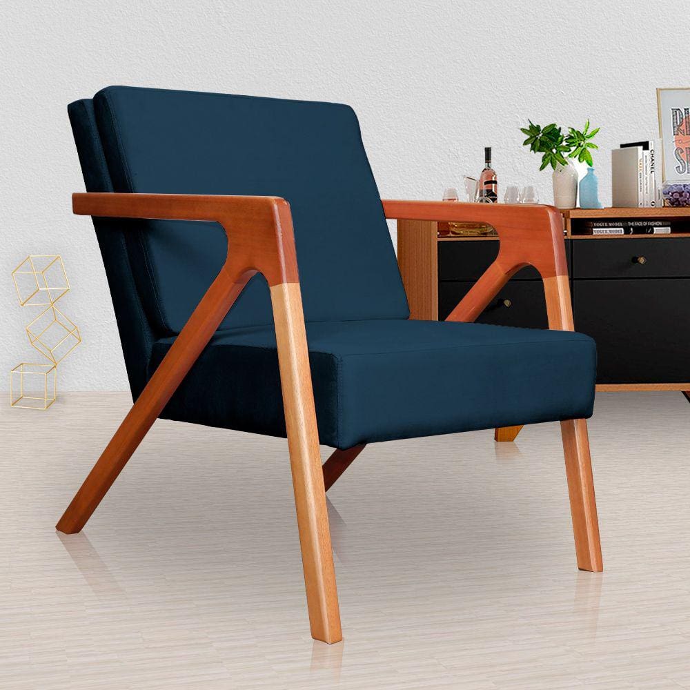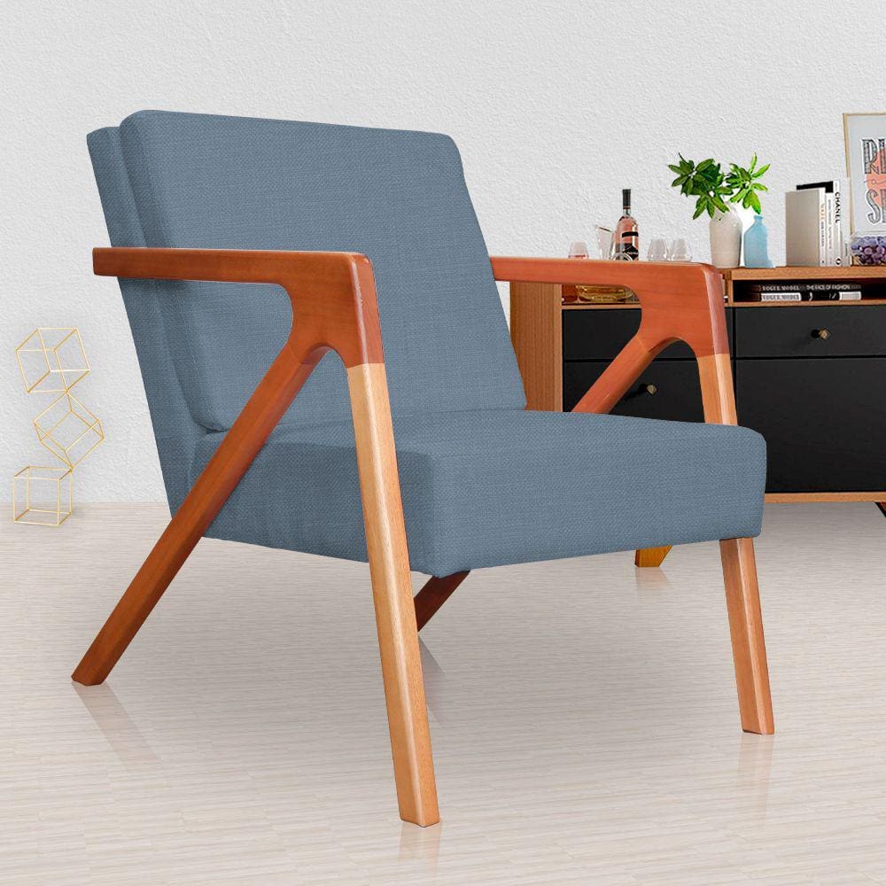 poltrona decorativa braco madeira azul