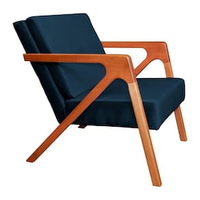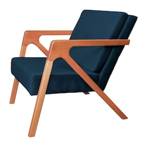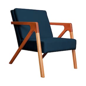 Poltrona Decorativa Braços de Madeira Sala de Estar Monalisa Veludo Azul Marinho - LM DECOR