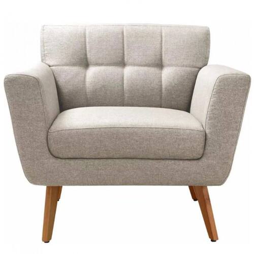 Poltrona Decorativa Bruna Sala ou Recepção C/ Pés Madeira Bella Decor - Bege
