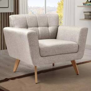 A Poltrona Bruna traz muita segurança e conforto para diversos ambientes. Uma poltrona totalmente estofada, com estrutura em madeira com espuma D26. Base também em madeira e assento fixo, perfeita para ambientes como sala de estar, recepção, consultórios e quartos.