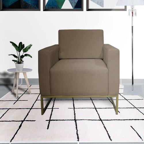 Poltrona Decorativa Com Base de Ferro Para Hall de Entrada Leticia Pé Ferro Suede Cappuccino - LM DECOR - Bege Médio