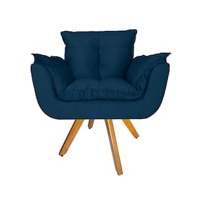 Poltrona Decorativa Com Base Giratória De Madeira Para Recepção Opala Suede Azul Marinho - LM DECOR