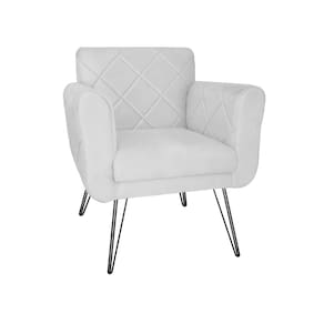 Poltrona Decorativa Com Pés de Ferro Para Salão de Beleza Isabella Suede Branco - LM DECOR