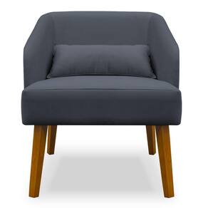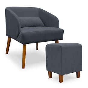 Poltrona Decorativa com Puff Virgínia Veludo Cinza - Montanaris Decor
