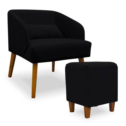 Poltrona Decorativa com Puff Virgínia Veludo Preto - Montanaris Decor