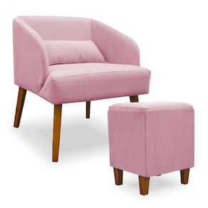 Poltrona Decorativa com Puff Virgínia Veludo Preto - Montanaris Decor