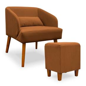 Poltrona Decorativa com Puff Virgínia Veludo Terracota - Montanaris Decor - Laranja