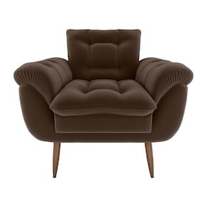 Poltrona Decorativa Confortável Pés Em Madeira Maciça Xangai Veludo Marrom Matrix Veludo Marrom
