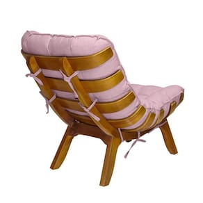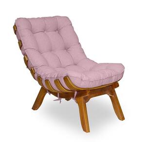Poltrona Decorativa Costela Base Madeira Linho Rosa
