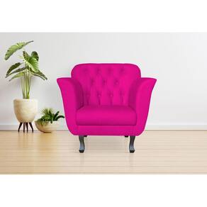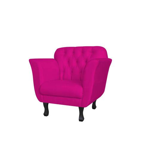 Poltrona Decorativa Dália Couro Rosa Pink Pés Madeira Mz Decor