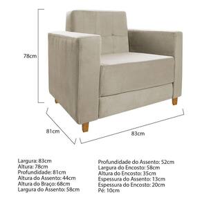 Muito além de decorar um ambiente, na atualidade, poltronas ocupam um lugar de destaque nos mais diversos lares, pois, geralmente transmitem o que há de mais singular na personalidade de quem as escolhe. Com a Poltrona Denver, essa singularidade é expressa através de sofisticação, qualidade e bom gosto! Projetada para atender sua expectativa, apresentando estilo clássico, sem deixar de ser moderna, a Poltrona Denver foi feita para você que preza conforto e bem estar, além de requinte e distinção. Não perca essa oportunidade e adquira já a sua! Especificações Técnicas da Poltrona Decorativa Denver: - Altura: 78 cm; - Largura: 83 cm; - Profundidade: 81 cm; - Altura do Assento: 44 cm; - Altura do Braço: 68 cm; - Largura do Assento: 58 cm; - Profundidade do Assento: 52 cm; - Largura do Encosto: 58 cm; - Altura do Encosto: 35 cm; - Espessura do Assento: 13 cm; - Espessura do Encosto: 20 cm; - Altura do Pé: 10 cm. - Peso: 20 kg. - Peso Suportado: 130 kg. Diferenciais da Poltrona Decorativa Denver: - Material da Estrutura: fabricado com Madeira Pinus e Eucalipto Reflorestada, e alguns detalhes em MDF; - Tipo de Assento: estofado e com espuma de densidade D-26; - Tipo de Encosto: estofado e com espuma de densidade D-18; - Detalhes dos Pés: acompanha kit de pés (4 pés) de madeira, no estilo quadrado na cor mel, com alta resistência; - Volumes: nessa compra você receberá um único produto. Recomendações de limpeza: -Limpar com flanela limpa e seca. Não molhar o móvel e não expor em lugar úmido ou próximo de fontes de calor. Não usar produtos abrasivos. Observações Importantes: - As imagens ambientadas são meramente ilustrativas e podem apresentar itens que não compõe o produto; - Objetos decorativos que aparecem na foto não acompanham o produto; - As cores do produto podem variar de acordo com o monitor, a iluminação do ambiente, ou sua percepção visual; - A Poltrona Decorativa Denver chegará desmontada para você, bastando rosquear os pés; - Confira as dimensões antes da compra e certifique-se de que o produto passará por elevadores, portas e corredores, já que nossa não inclui a subida de lances de escada, ou o de produtos; - Ao receber seus produtos, verifique no ato do qualquer dano na embalagem. Caso tenha alguma , favor não assinar o de (A transportadora tem obrigação de esperar a conferência); - Produto para uso residencial em ambiente interno, não devendo ficar exposto diretamente ao sol, calor e umidades excessivas.