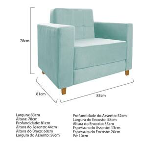 Poltrona Decorativa Denver Suede Azul Tiffany - Doce Sonho Móveis