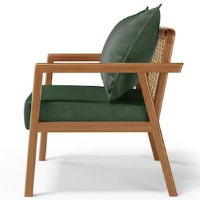 A Poltrona Decorativa Para Sala de Estar e Living Alícia B04 Couríssimo Verde Musgo é a peça perfeita para adicionar um toque de estilo moderno a sua sala de estar. Com sua estrutura em madeira maciça envernizada, essa poltrona de madeira traz durabilidade e elegância para o ambiente. O assento estofado e revestido com materiais de qualidade oferece conforto excepcional, permitindo que você relaxe com estilo. Já o design moderno combina perfeitamente com qualquer tipo de decoração, tornando-a uma escolha versátil para qualquer sala de estar, living, recepção, escritório e diversos outros ambientes. A cereja do bolo fica por conta do detalhe da corda trançada no encosto com a almofada sobreposta, um charme à parte.