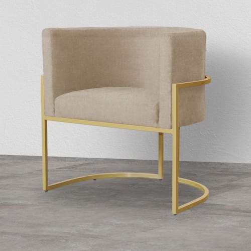 Poltrona Decorativa Estofada Base de Ferro Sala Luana Suede Cappuccino - LM DECOR - Bege