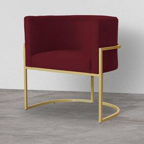Poltrona Decorativa Estofada Base de Ferro Sala Luana Suede Vermelho Bordô - LM DECOR
