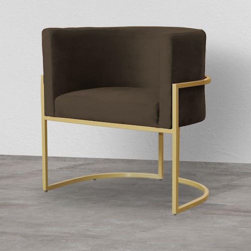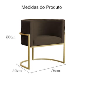 Poltrona Decorativa Estofada Base de Ferro Sala Luana Veludo Marrom - LM DECOR