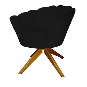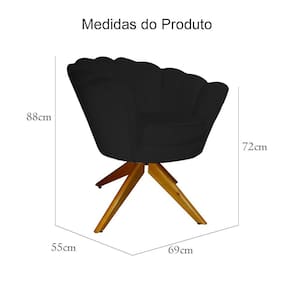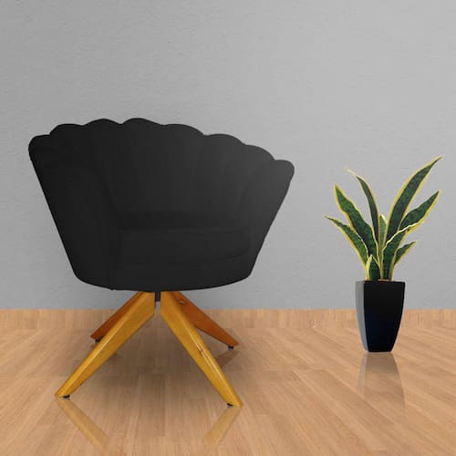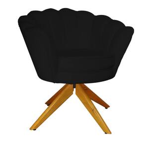 Poltrona Decorativa Estofada Base Giratória de Madeira Pétala Suede Preto - LM DECOR