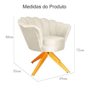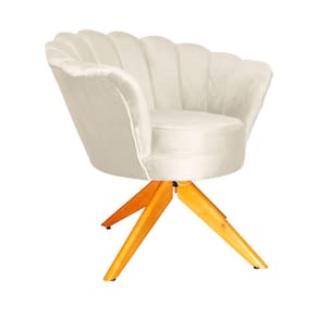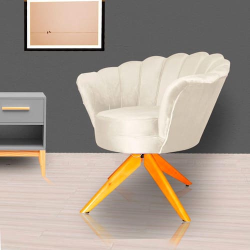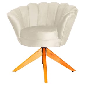 Poltrona Decorativa Estofada Base Giratória de Madeira Pétala Veludo Bege - LM DECOR