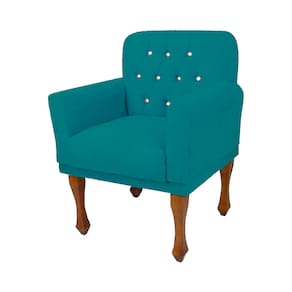 Poltrona Decorativa Estofada Com Botões De Strass Anitta Suede Azul Turquesa LM DECOR