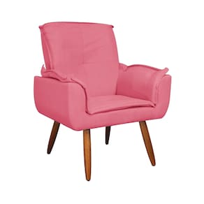 Poltrona Decorativa Estofada Para Hall de Entrada Emília Plus Suede Rosa Barbie - LM DECOR