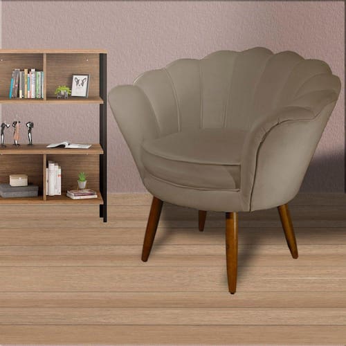 Poltrona Decorativa Estofada Para Hall de Entrada Pétala Suede Cappuccino - LM DECOR - Bege Médio