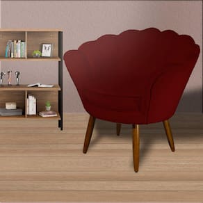 Poltrona Decorativa Estofada Para Quarto Closet Pétala Suede Vermelho Bordo - LM DECOR