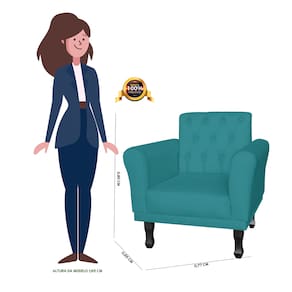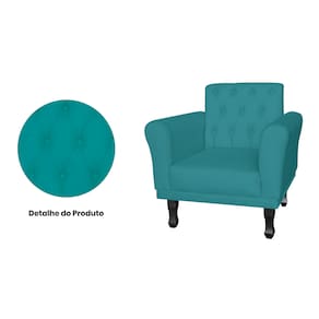 Poltrona Decorativa Estofada Para Sala de Estar Classic Suede Azul Turquesa - LM DECOR
