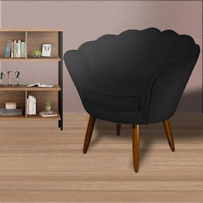 Poltrona Decorativa Estofada Para Salão de Beleza Pétala Suede Preto - LM DECOR