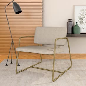 Poltrona Decorativa Estofada Sintra Dourado/suede Bege - M.a
