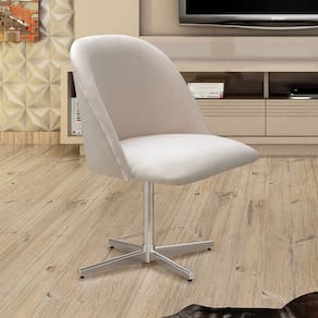 Poltrona Decorativa Gaia Giratória Metal para Sala, Quarto, Recepção Bege Claro