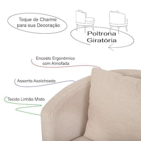 Poltrona Decorativa Giratória Cora Em Linho Misto Bege