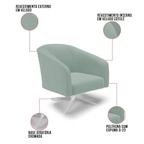 A Poltrona Decorativa Stella é a combinação perfeita de conforto, elegância e modernidade. Seu design curvo e marcante oferece uma sensação única de aconchego, como um abraço acolhedor, tornando-se a peça ideal para compor sua decoração com estilo e sofisticação. Revestida em veludo cotelê na cor menta, a poltrona Stella apresenta um encosto com acabamento texturizado e volumoso interno que lembra um plissado, adicionando um toque elegante e alinhado às tendências atuais. Sua estrutura robusta é sustentada por uma base giratória cromada, unindo resistência e design contemporâneo. A tendência desse estilo minimalista ganha destaque, conferindo sofisticação ao móvel, que é perfeito para qualquer espaço que exija funcionalidade e bom gosto. Com enchimento em espuma D-23 no encosto e assento, a Poltrona Decorativa Stella garante o máximo de conforto, mesmo em longos períodos de uso. Além desse modelo, também temos várias opções em base/pés e uma grande variedade de tecido/cores para atender ao seu estilo e conforto. E para deixar seu ambiente ainda mais harmonioso, oferecemos também kits especiais no mesmo design. Caso queira ajuda para escolher a melhor opção para o seu espaço, estamos à disposição! Garanta já seu Kit 2 Poltronas.