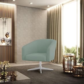 A Poltrona Decorativa Stella é a combinação perfeita de conforto, elegância e modernidade. Seu design curvo e marcante oferece uma sensação única de aconchego, como um abraço acolhedor, tornando-se a peça ideal para compor sua decoração com estilo e sofisticação. Revestida em veludo cotelê na cor menta, a poltrona Stella apresenta um encosto com acabamento texturizado e volumoso interno que lembra um plissado, adicionando um toque elegante e alinhado às tendências atuais. Sua estrutura robusta é sustentada por uma base giratória cromada, unindo resistência e design contemporâneo. A tendência desse estilo minimalista ganha destaque, conferindo sofisticação ao móvel, que é perfeito para qualquer espaço que exija funcionalidade e bom gosto. Com enchimento em espuma D-23 no encosto e assento, a Poltrona Decorativa Stella garante o máximo de conforto, mesmo em longos períodos de uso. Além desse modelo, também temos várias opções em base/pés e uma grande variedade de tecido/cores para atender ao seu estilo e conforto. E para deixar seu ambiente ainda mais harmonioso, oferecemos também kits especiais no mesmo design. Caso queira ajuda para escolher a melhor opção para o seu espaço, estamos à disposição!