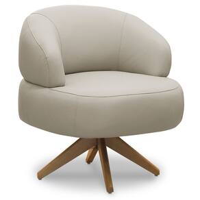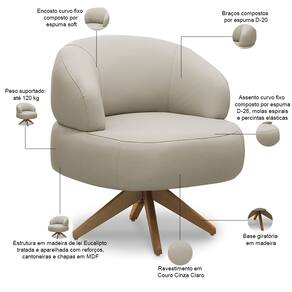 Com design orgânico e base giratória em madeira maciça, essa poltrona decorativa une elegância e funcionalidade num único movimento. O revestimento premium em couro combina com a espuma de alta densidade para oferecer conforto inteligente: firmeza que não sacrifica o aconchego. Já a base em madeira traz equilíbrio perfeito entre materiais, enquanto o mecanismo giratório 360° transforma qualquer canto em ponto de observação privilegiado do ambiente.
