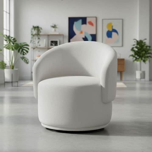Produzida com estrutura em madeira reflorestada, assento e encosto estofados com espuma D-23 e base giratória em metal, oferece excelente ergonomia, resistência e durabilidade. Seu formato acolhedor garante conforto no uso diário, tornando-se destaque em ambientes modernos e sofisticados.
