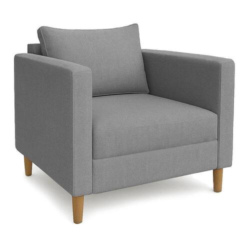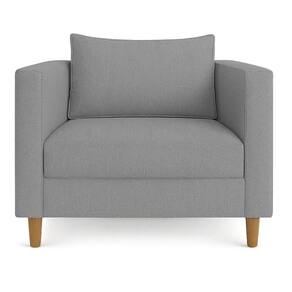 Poltrona Decorativa Helena Linho Pés Madeira Cinza