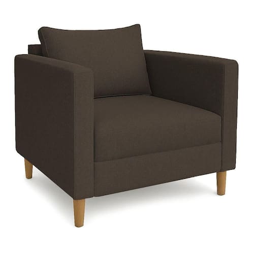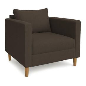 Poltrona Decorativa Helena Linho Pés Madeira Marrom